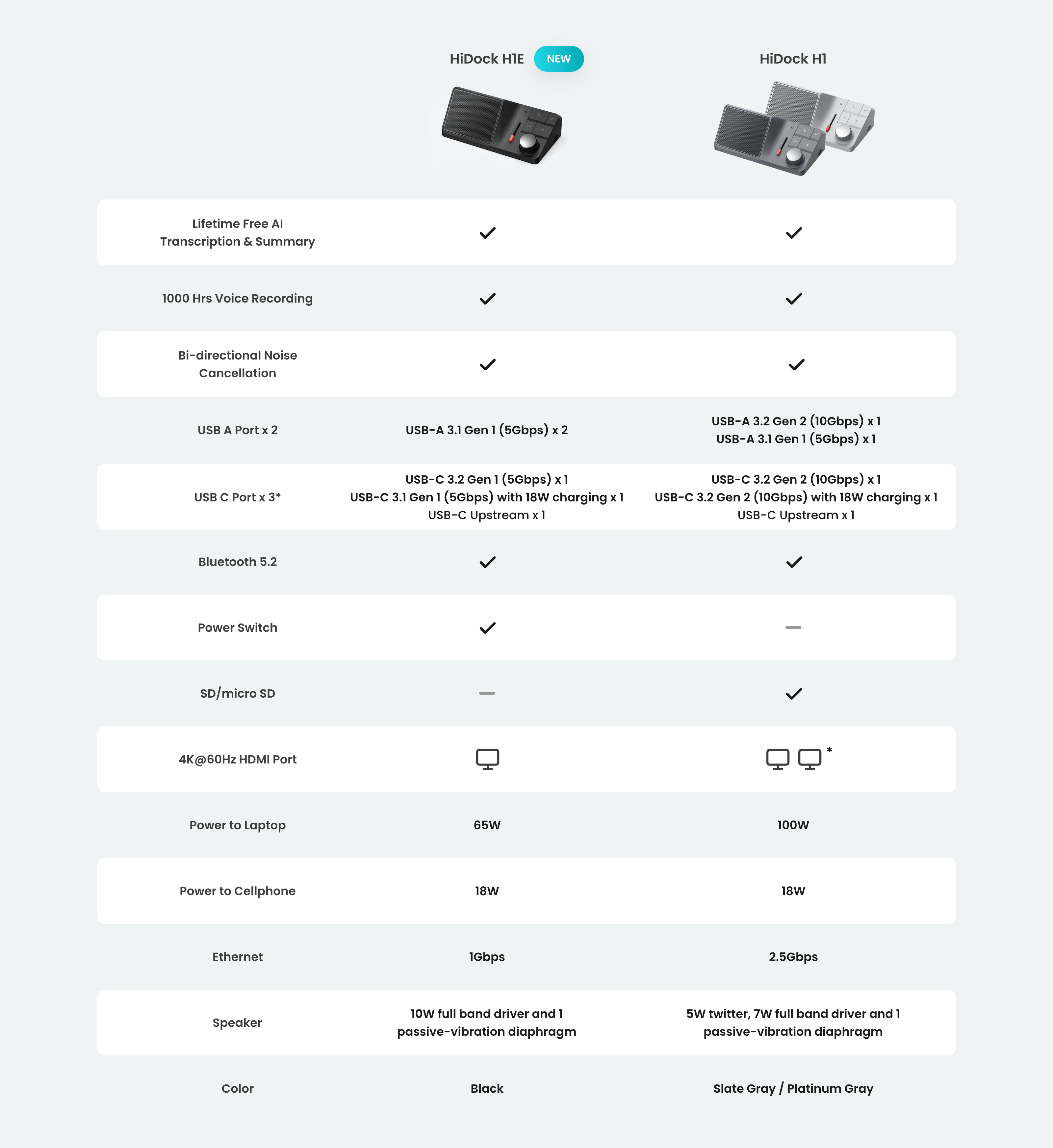 O HiDock H1 é uma revolução de desktop com chamadas sem ruído , gravação de IA com tecnologia ChatGPT e um dock multiporta. Um complemento estético para trabalho híbrido eficiente.